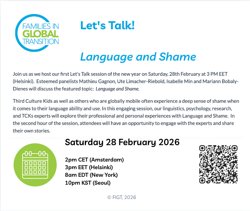 On Saturday 28 February 2026 I will have the honor and pleasure to talk about Language and Shame at the Let's Talk! session organized by Families in Global Transition.