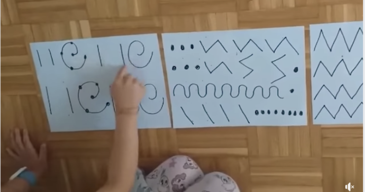 Children can find their very own way to represent music and sounds: through art. They can draw something or design lines like in this example (it is from the Psicomúsica page on facebook; 3 July 2020 – click on the image to access the video):