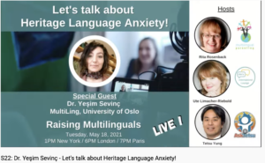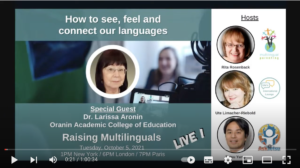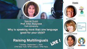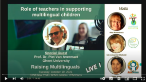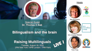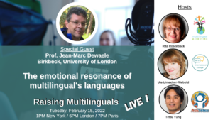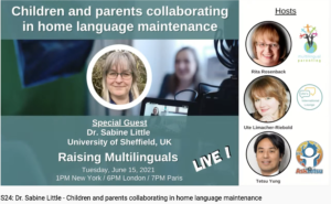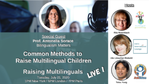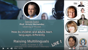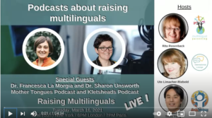 Since 2020 we interview experts in the field of raising children with multiple languages and maintaining languages across the lifespan at the live broadcast Raising Multilinguals LIVE.