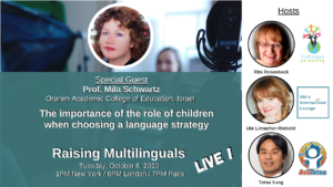 Join our free Raising Multilinguals LIVE events and ask your questions to the experts during the live sessions that are streamed on our facebook page , LinkedIn page and our Youtube Channel!