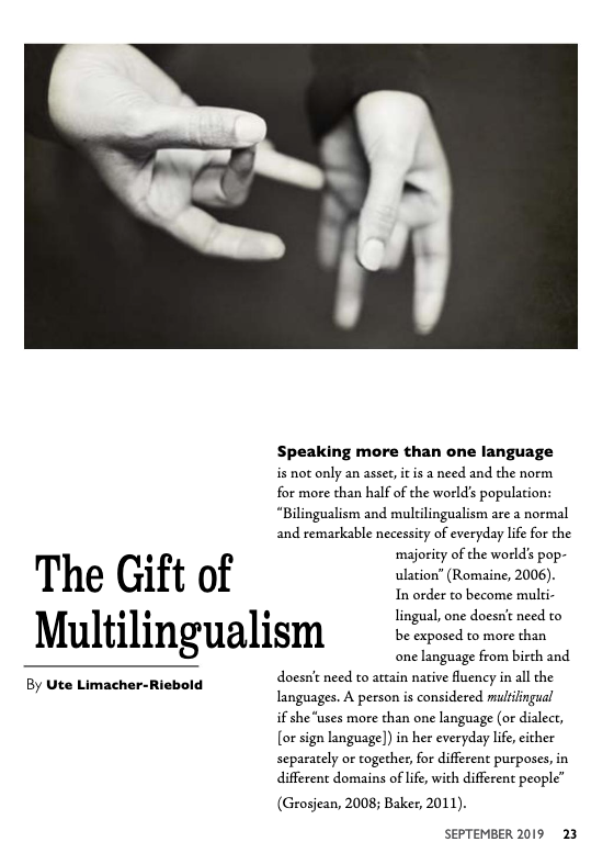 When Marilyn Gardner asked me to write an article for the September 2019 issue of Among Worlds, Communication: our languages and lexicons I couldn’t resist writing about the gift of multilingualism.