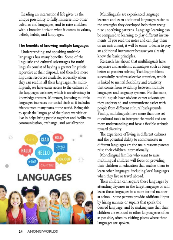 I am very honored to see my article published in this magazine dedicated to so many important topics for internationals!