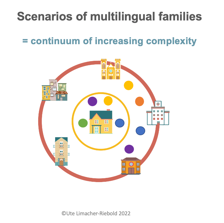 This is why when speaking about all our languages at home, I use colors and not labels like L1, language alpha, mother tongue – or father tongue, to be fair (see the image here below, which I use in my workshops and trainings).